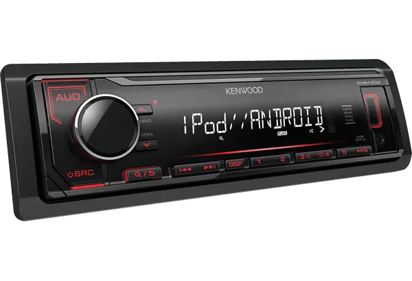 Простой в использовании и эргономичный автопроигрыватель Kenwood KMM-204 – это практичное устройство, спроектированное для того, чтобы Вы могли в процессе вождения наслаждаться качественным музыкальным звучанием. Kenwood KMM-204 выполнен в черном цвете. Глянцевая передняя панель в сочетании с красной подсветкой кнопок управления придает внешнему виду агрегата утонченность. Модель выполнена в традиционном типоразмере 1 din и функционирует от бортовой 12-вольтной сети. Конструкция агрегата предусматривает наличие четырехканального усилителя звука, общая выходная мощность которого составляет 200 Вт. Используйте трехполосный эквалайзер, чтобы идеально настроить звучание музыки. Также предусмотрен фильтр низких частот, который поможет избавить музыку от чрезмерно грубо звучащих басов.