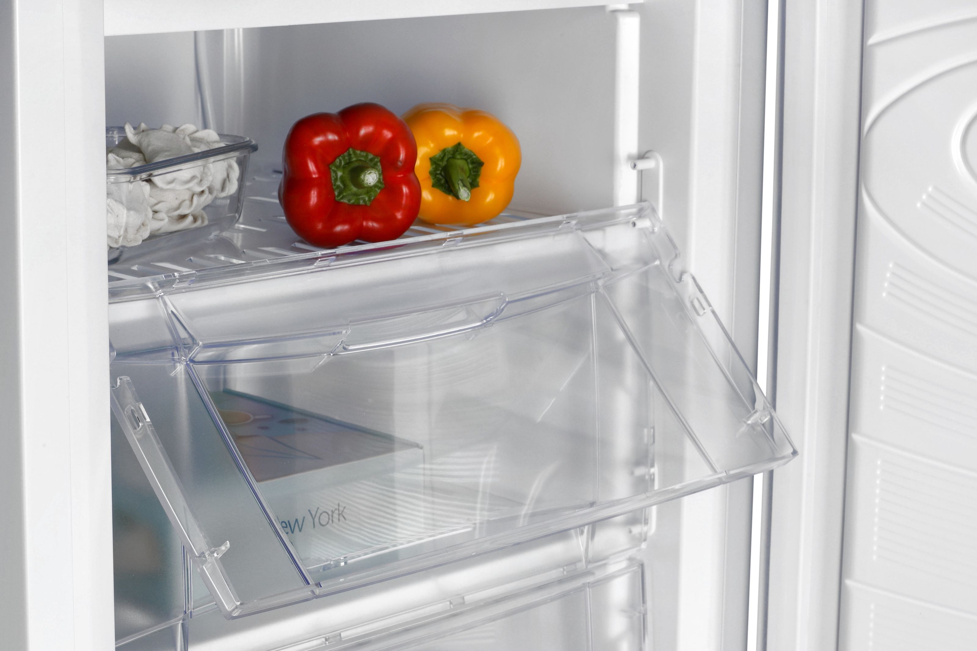 Морозильник относится к высокому классу энергоэффективности А+. Модель способна охладить до 12 кг ягод, овощей, фруктов, птицы и полуфабрикатов в сутки. Откорректировать температуру позволит механический термостат, расположенный на панели управления внутри морозильной камеры.