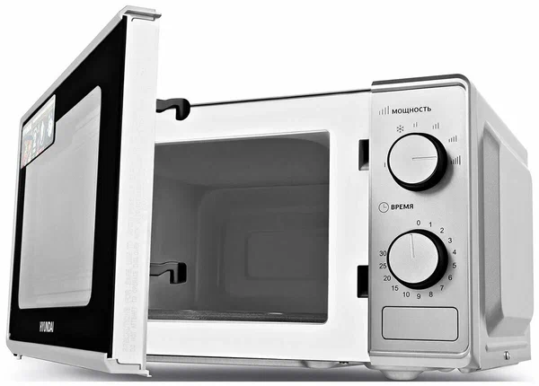 Hyundai HYM-M2042 — серебристая микроволновая печь объёмом 20 л с мощностью микроволн 700 Вт.
